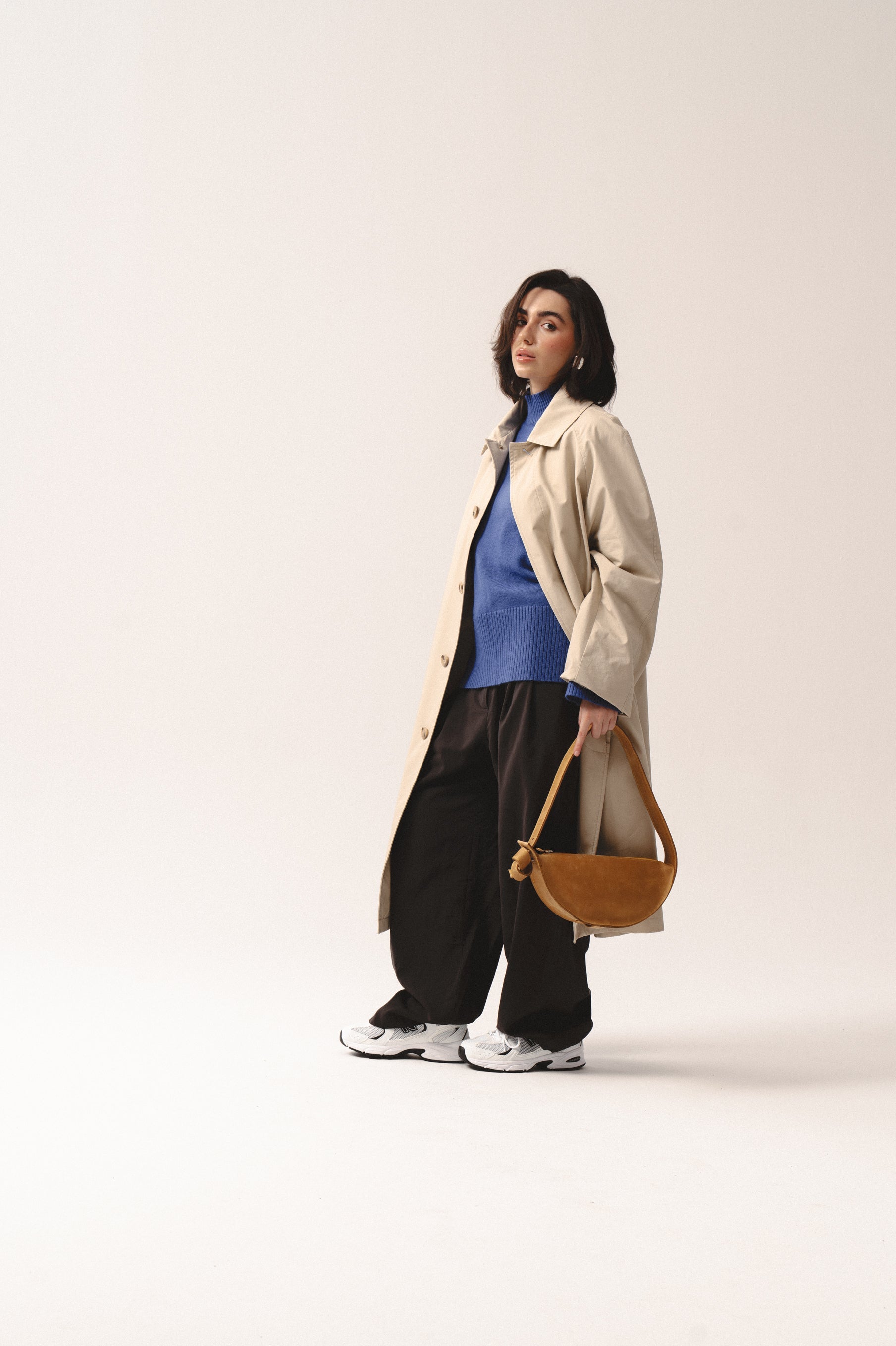 Zapinana na knopik lub z możliwością zawiązania, dodaje subtelnego, unikalnego charakteru.